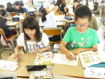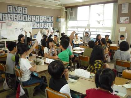 歌に合わせて,英語で数の練習です。大きな声でしっかり言えました。また、チーム対抗のゲームも盛り上がりました。