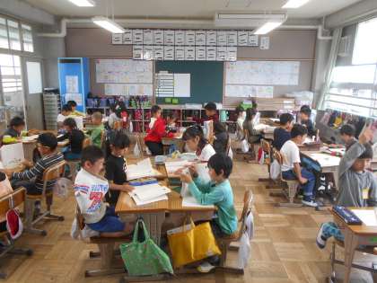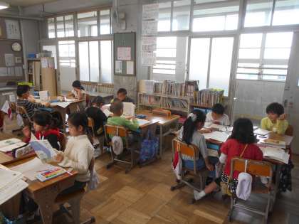 きつつきの商売で音読会をするために各班で音読の練習をしています。自分で読む工夫を考えて練習を重ねています。