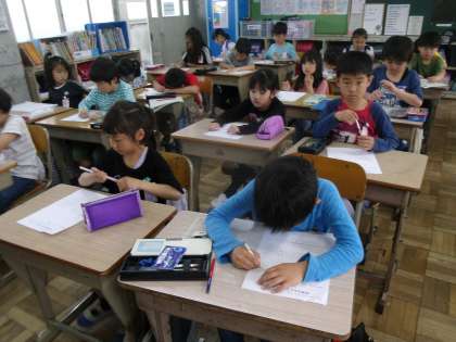 学校案内をしたあと教室でふりかえりをしました。ちょっと緊張した子も多かったようですが,1年生を案内できてとてもうれしかった2年生です。