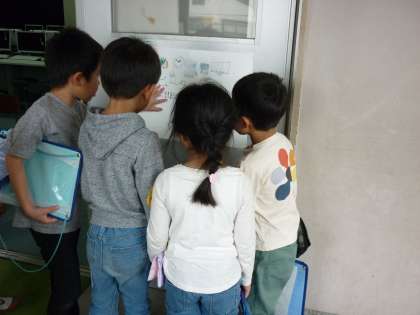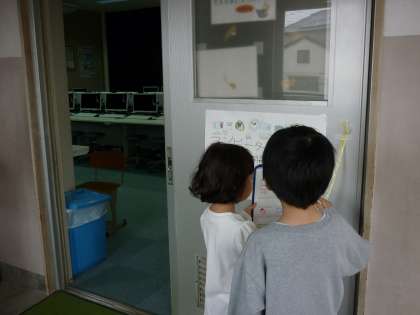2年生と学校たんけんに行きました。優しく手をひいて,学校のいろいろな教室を案内してくれました。
