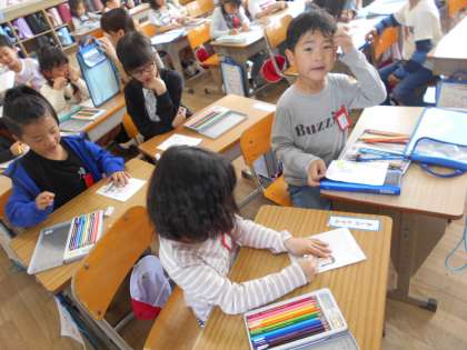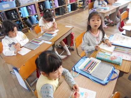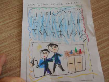 学校探検でお世話になったお礼にお手紙を書きます。上手に気持ちを伝えられることができたね。