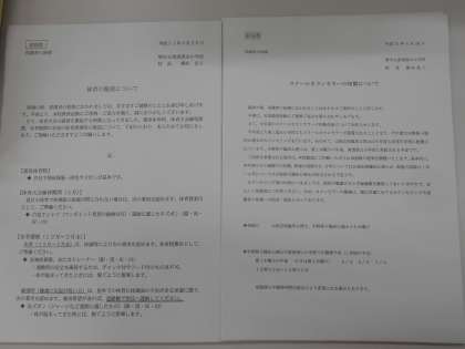 今日はたくさんの手紙や宿題を配布しています。