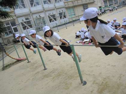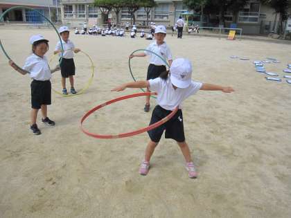 鉄棒あそびと竹馬,フラフープ,一輪車をしました。