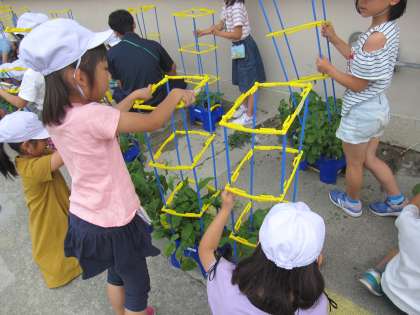 放課後に見に行くと,つるが巻き付いていたものがありました。