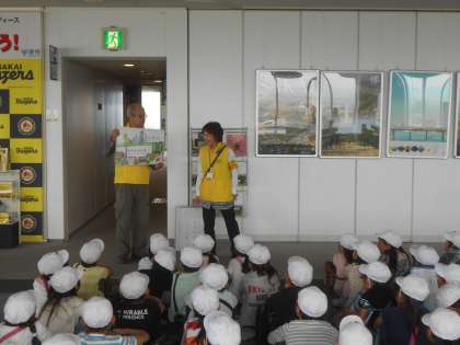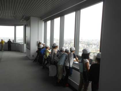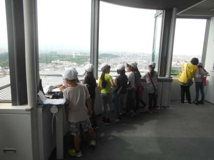 校外学習で堺市市役所の展望ロビーに行きました。堺市を360度見渡し,堺市の特徴を調べました。