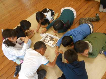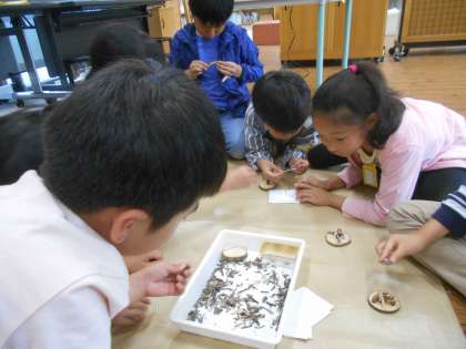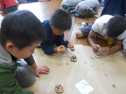 ふれあい自然の森に行きました。どんぐりを使って楽しみました。