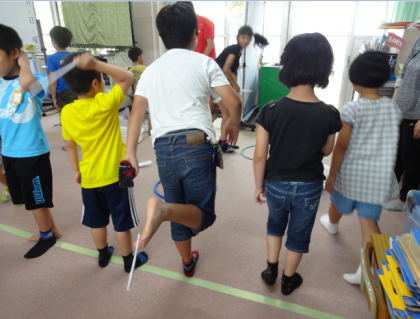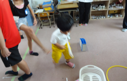 みんなも負けじと、足で投げています!意外と難しい!!でも楽しいです。いろいろな遊び方がありますね。