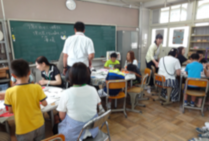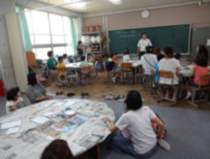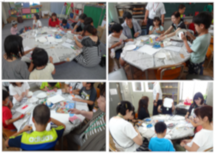 ゲームの後は制作です。海の生き物を、紙皿やコップ、トレイなどを使って作りました。かに、いか、たこ、魚など、作りたいものがいっぱい!!お家の人といっしょに楽しんで取り組んでいました。