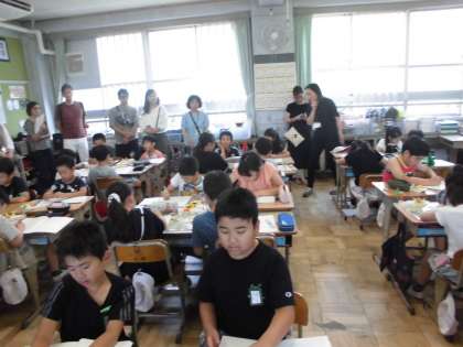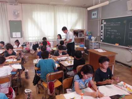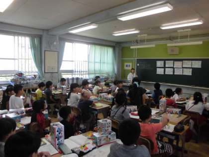 暑い中参観にお越しいただきありがとうございました。電池の向きとモーターの向きには,どのような関係があるのか,実験しました。
