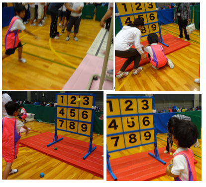 ストラックアウトでは、みんな力強く投げていました。午前の部 24校が集まったので、熱気がすごいです!