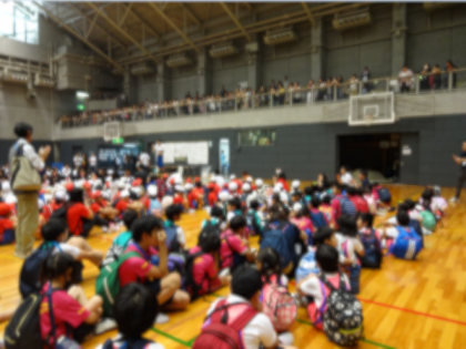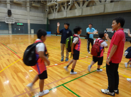 閉会式です。合同レクレーション大会の運営委員さん、実行委員さん、ありがとうございました。お礼を言ってさよならしました。