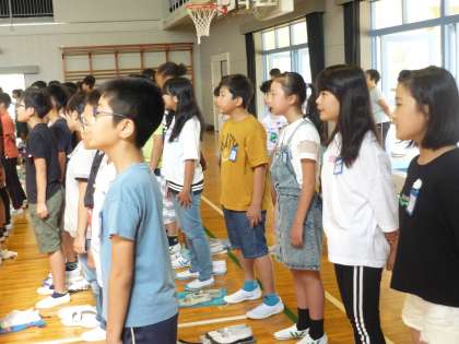 「明日は晴れるや」の歌を歌いました。きれいな歌声で歌っていました。