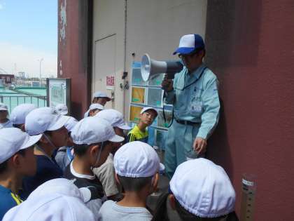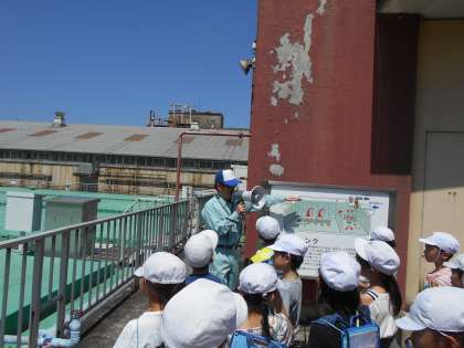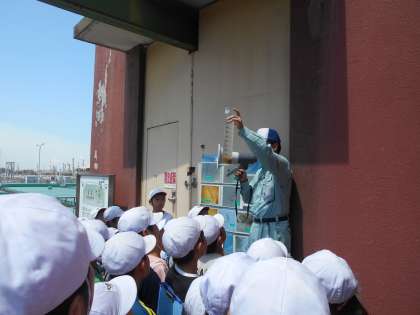 微生物の働きについて,興味を持って話を聞いていました。微生物のおかげで水がきれいになっているんですね,