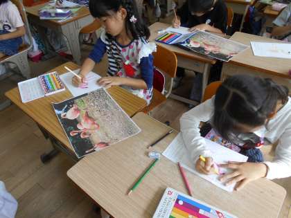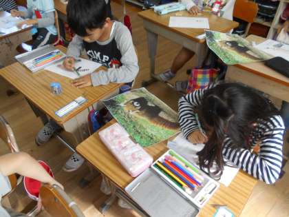 天王寺動物園で見た動物の,動きや特徴の話をしながら,楽しくまとめました。