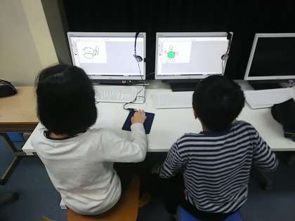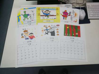 今日のなかよしパソコンは,11月のカレンダーを作りました。「○○○の秋」といえば?というテーマで絵を決め,スポーツや食欲など様々な秋の絵を描いていました。