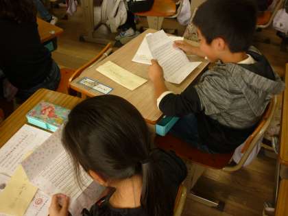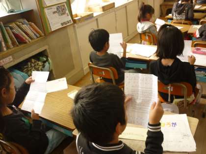 「ひろがれえがお」のまとめとして,お家の人からもらったお返事をみんなで読みました。嬉しくて,ニコニコしたり涙ぐみながら読んでいる子もいました。