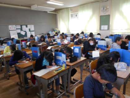 漢字の小テストです。覚えてきた漢字をしっかり書いていました。