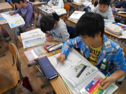 大阪府のどこに森林が多いのか,住宅が多いのか,工場が多いのかなど,地図に色をぬって確認していきました。