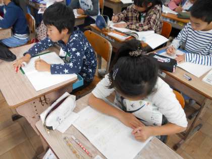 「アップとルーズで伝える」の学習です。段落どうしがどのようにつながっているのかを考えました。
