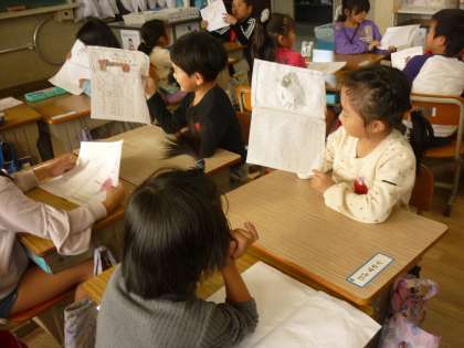 遠足で調べた,天王寺動物園の動物についてまとめたものを,友だちに知らせました。