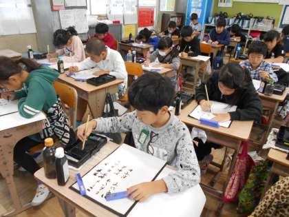 小筆で秋の様子を書き表しました。