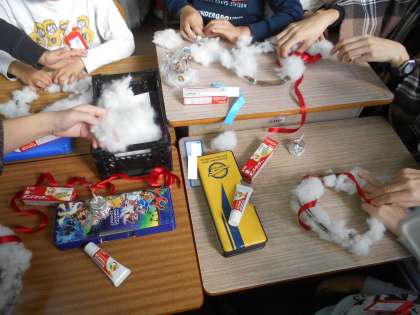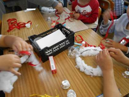 おうちの方々のお力を借りないと,到底できなかった「クリスマスリース」作り。