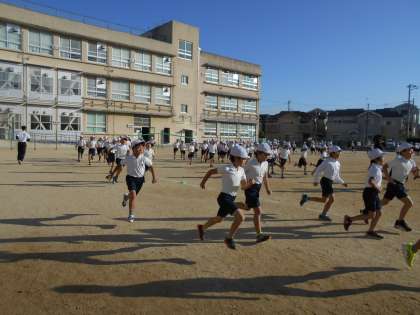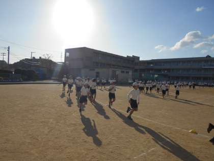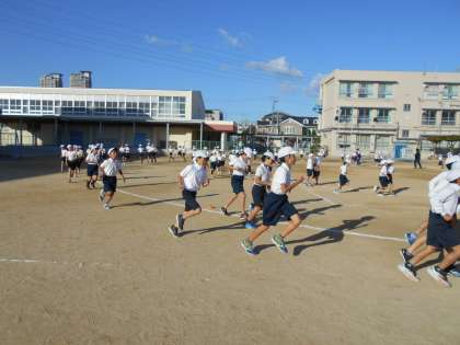 前回より,みんなの走るペースが速くなりました。5分間走の練習の成果ですね。