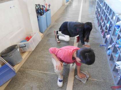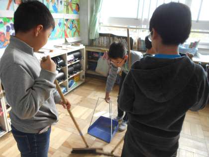掃除の時間です。各クラス,一生懸命掃除に取り組んでいました。