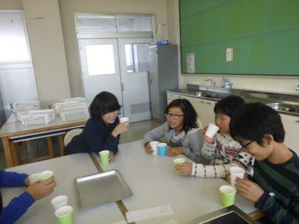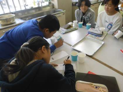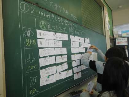 2つのみそしるを飲み,見た目やにおい,味の違いを比べました。