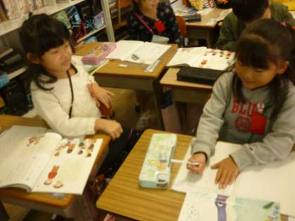 隣の席の友だちを紹介することをめあてに,「いま,一ばんたのしいとおもうことはなんですか。」と質問し合いました。