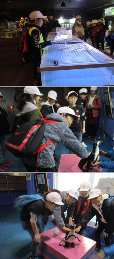 クイズで全問正解のグループは、ペンギンをさわらせてもらいました。