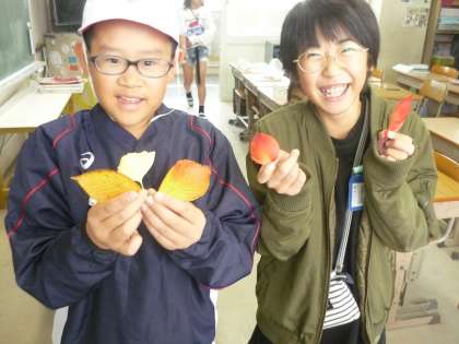 「見てー!」と学校にあった落ち葉を拾ってきてくれました。冬を感じられますね。