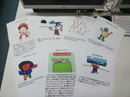 今日のなかよしパソコンは,先日行われた合同学習発表会のふりかえりをしました。「ライトがまぶしかったけど,がんばった」や「知らない人が見ていて緊張したけどがんばった」など思い思いのふりかえりを書いていました。