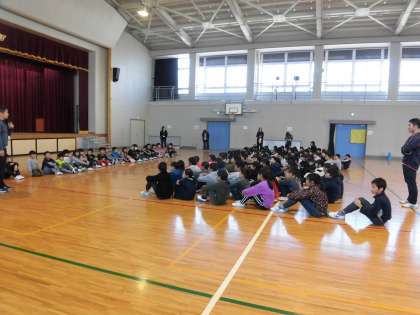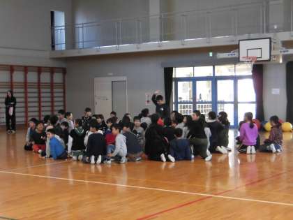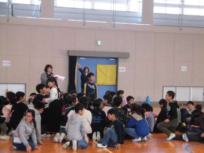 4年生との交流会,グループに分かれて遊んだあとは,全体で集合ゲームをしました。呼ばれたなかよしのメンバーのところに集まるゲームです。自分の周りにお友達が集まりうれしそうでした。