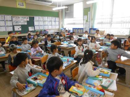 静かにお道具箱の整理をしていました!