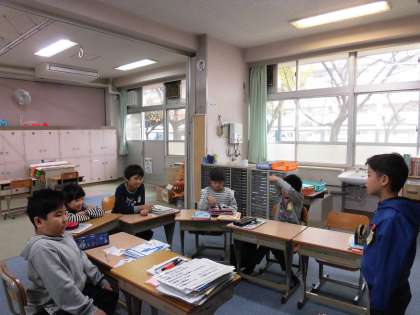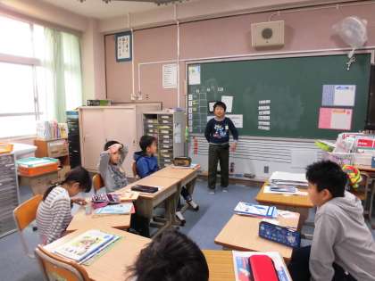 朝の会の様子です。スピーチが上手になってきたので,しっかり聞き質問をする練習をしています。