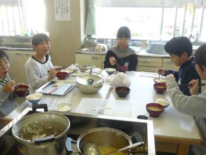 「自分で作ったごはん,おいしいなぁ。」とおかわりする人がたくさんいました。どのグループもおいしくできました!