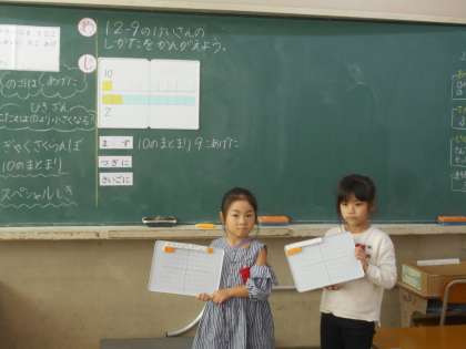 ひき算の学習,みんなで一緒に考えています。