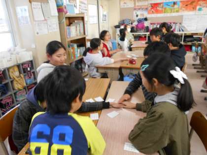 クラスで百人一首大会です。だんだんとれる札も増えて,レベルも上がってきました!