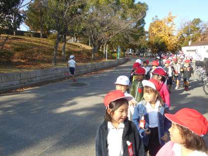 公園に着くと,走っている学年に「がんばれー!」と声をかける,すてきな応援団でした。