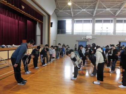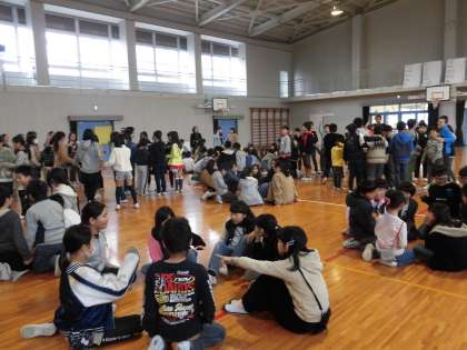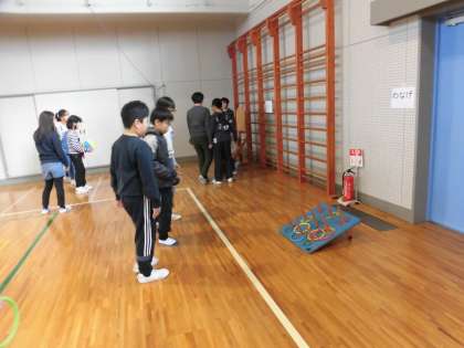 ブースごとにグループで遊んだ後は,全体で「手をたたいた数であつまろう」をしました。なかよしのメンバーの名前の数の人数であつまりました。