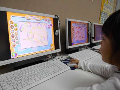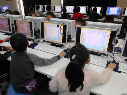 スタンプや模様をどんどん貼り付けて,見事な作品が出来上がっていました。