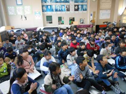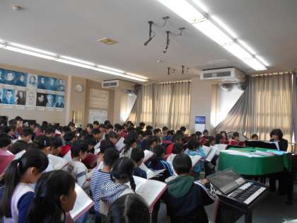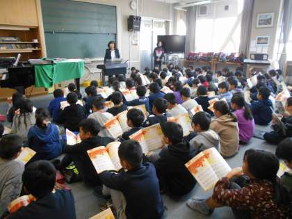 もみじ,オーラリー,茶色の小瓶を歌いました。手でリズムを確認したり,クラスごとの声の響きを聞きあったりしました。