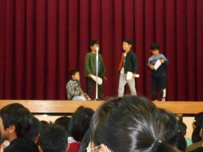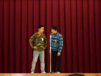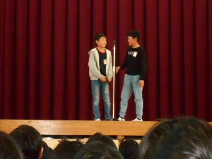お笑いクラブの発表がありました。最後に楽しませてくれました。