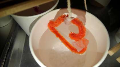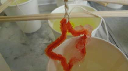 午後5時過ぎのミョウバン結晶の経過です。着々とできています!完成は・・・月曜日のお楽しみ!