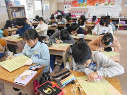 版画もだんだん形になってきました。細かい部分もあきらめずがんばりましょう!