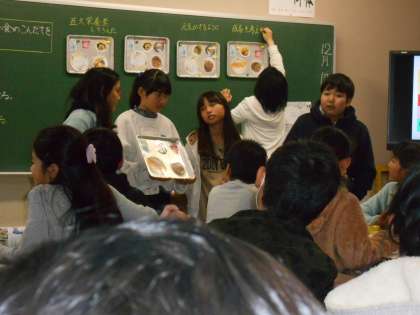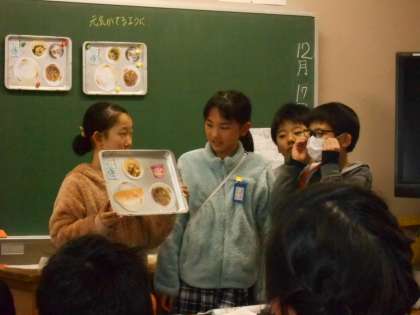 五大栄養素を気を付けて,給食の献立を考えました。栄養素,ご飯にあうか,偏りがないのか,考えました。