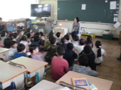 2年生はお話花束の方が各学級に入ってくださり,