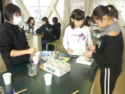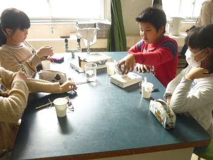 ミョウバンで結晶を作りました。来週の出来上がりが楽しみですね。