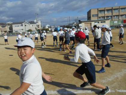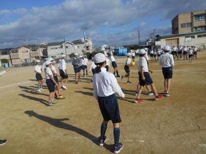 三角ドッジをします。ハチャメチャで面白いですね!!